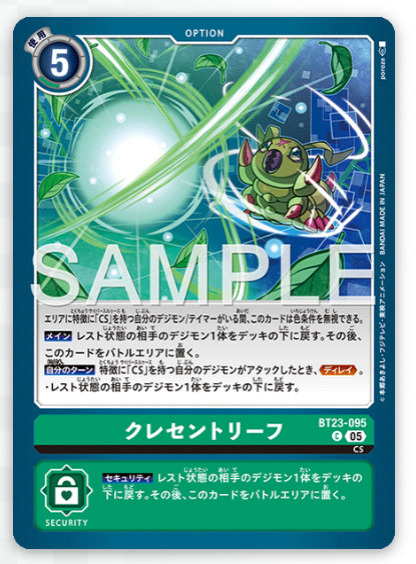 [Security] Return 1 of your opponent’s suspended Digimon to the bottom of the deck. Then, place this card in the battle area.