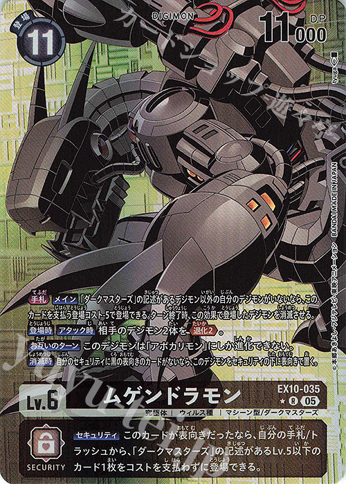 {Hand} [Main] If you don’t have any Digimon other than Digimon with [Dark Masters] in their texts, you may play this card with the play cost reduced by 5. At turn end, delete the Digimon this effect played.